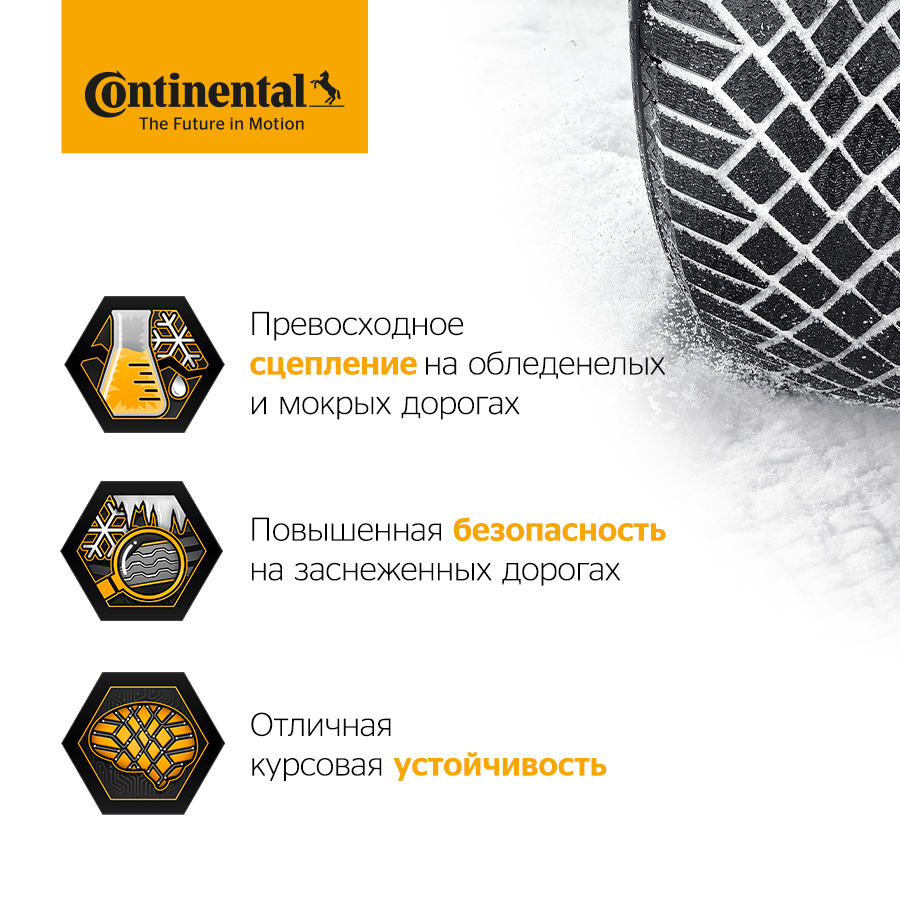 VikingContact™ 7 - нешипованная шина, разработанная для суровых условий российских и скандинавских зим. Превосходно сбалансированные характеристики для уверенности на заснеженных дорогах.